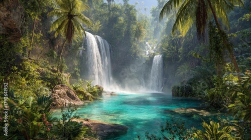 Scenic Tropical Waterfall and Lagoon
