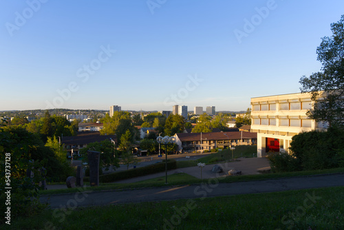 Scenic view of Zürich Schwamendingen with skyline on a sunny summer evening. Photo taken August 23rd, 2022, Zurich, Switzerland.