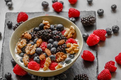 Schale mit Joghurt Beeren, Nüssen und Mandeln