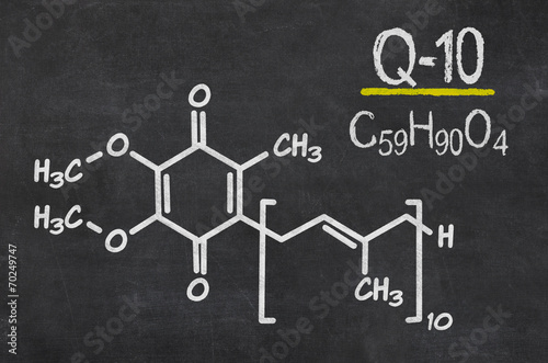 Schiefertafel mit der chemischen Formel von Coenzym Q10