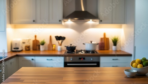 Schöne Moderne Küche Im Verschwommenen Hintergrund