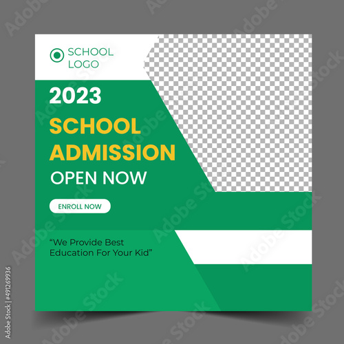 School admission social media post banner, educational social media post square flyer back to school web banner design template.
