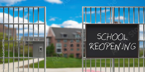 SCHOOL REOPENING sign, coronavirus days. 3d illustration