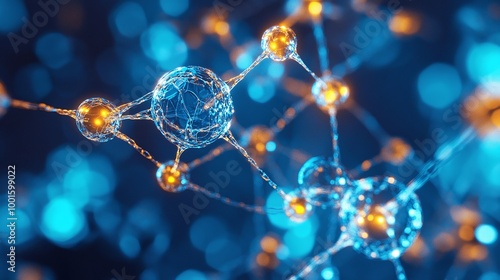 scientific visualization of hydrogen molecules connected in an abstract design on a blue background featuring transparent molecular structures and futuristic chemical bonding concepts