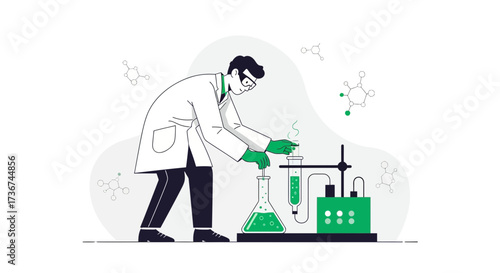 Scientist Conducting Experiment In Laboratory With Chemical Equipment and Solutions