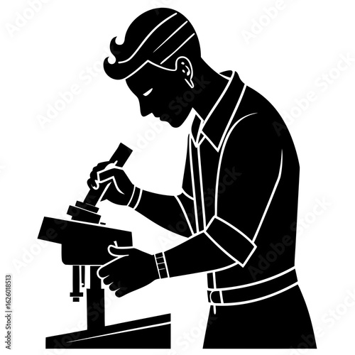 Scientist examining specimen under microscope laboratory