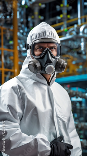 Scientist in Clean Suit with Protective Mask.