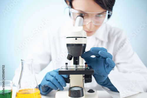 scientist looking at microscope