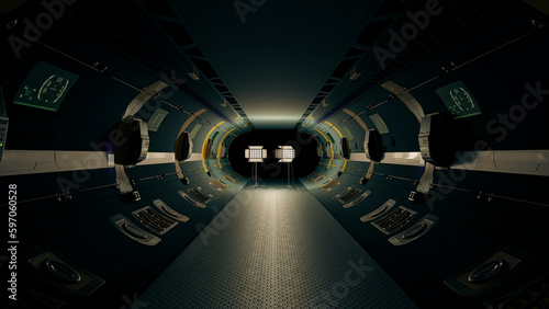 Sci-fi corridor background. Science and innovation idea concept. 3D render.