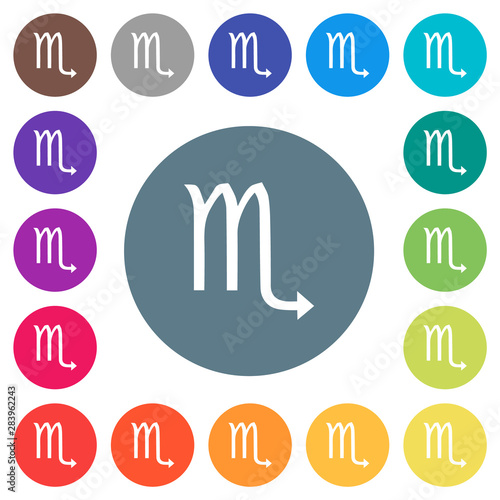 Scorpio zodiac symbol flat white icons on round color backgrounds