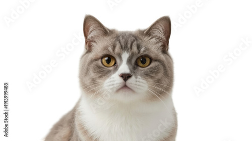 Scottish fold cat with distinctive folded ears and expressive face on white background