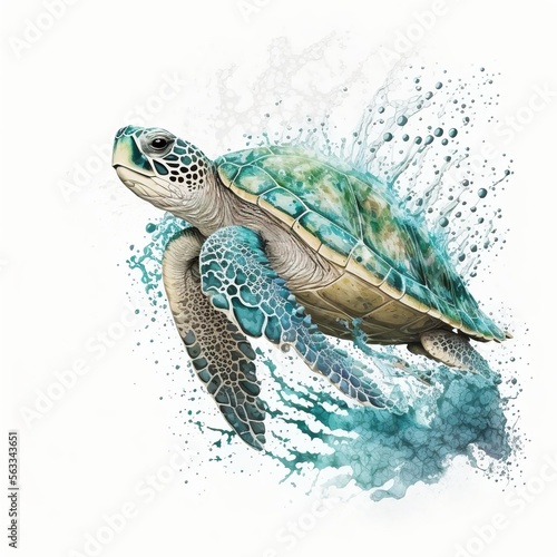 sea turtle majestic dramatic illustration isolated on white background