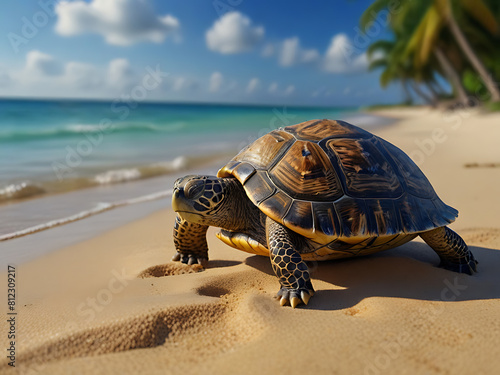 Sea Turtle on a Tropical Beach
