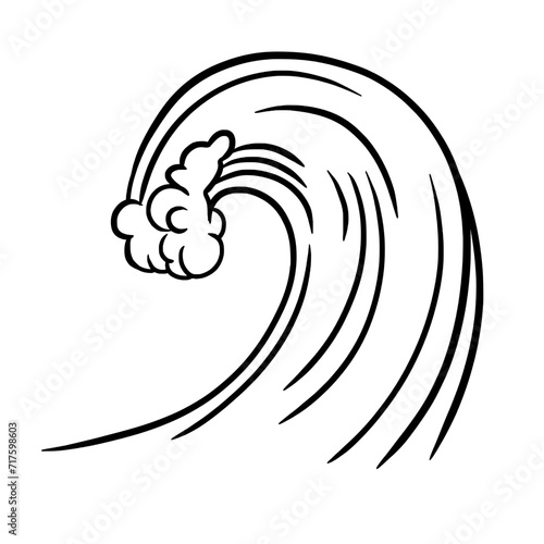 Sea wave with foam and splashes line art drawing