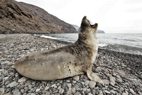 Seal with mouth open on beach