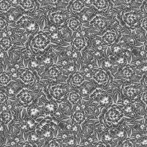 seamless abstract grey floral background with leaves