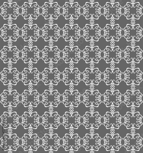 Seamless abstract pattern in white on grey background for fabric or wallpaper