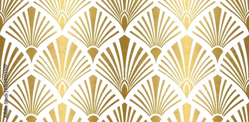 Seamless Art Deco pattern background with gold geometric fans on white. Luxury 1920s style texture.