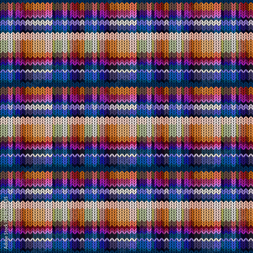 Seamless background with a knitted texture, imitation of wool. Multicolored diverse squares.