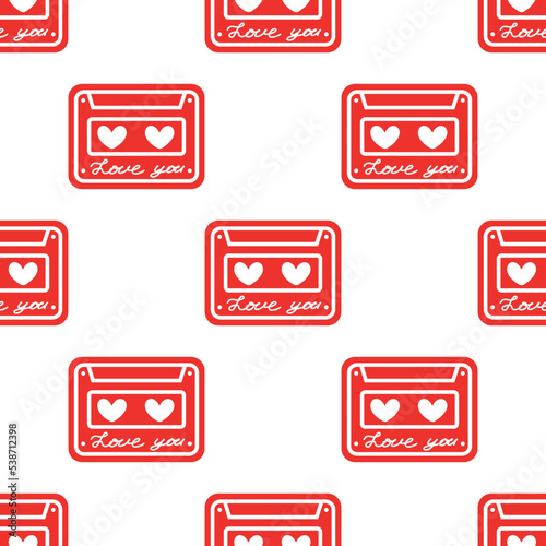 Seamless background with cassette and hearts. Design for Valentines Day. Vector illustration. Design for Valentines