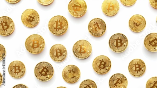 Seamless bitcoin pattern isolated on white background. Gold Coins. Digital Currency. Generative AI.