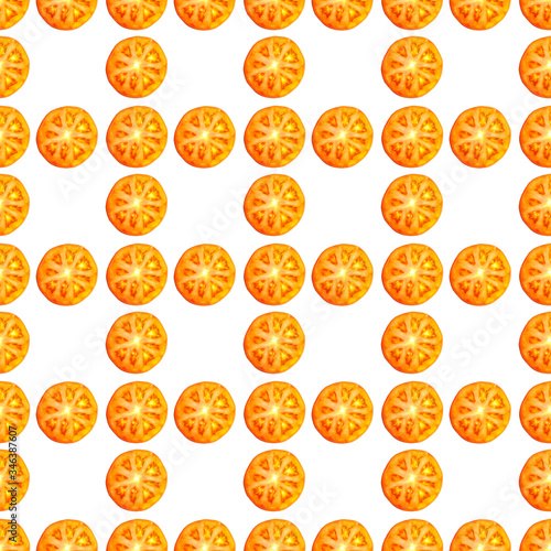 Seamless endless pattern of slices of juicy ripe red tomato. Design for wrapping paper, fabric and wallpaper.