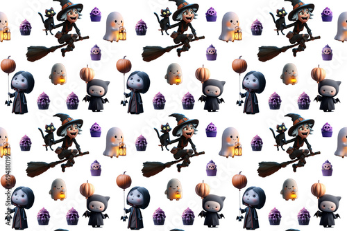 Seamless festive Halloween pattern with cheerful witches, funny vampires and ghosts