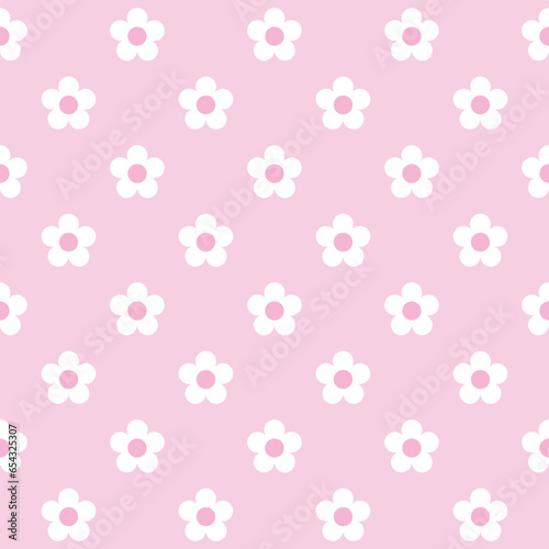 Seamless floral pattern. White flower on a pastel pink background. Vector illustration