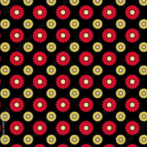 Seamless Floral Pattern with Red and Yellow Flowers on Black Background