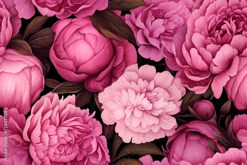 Seamless flower pattern illustration. Lush pink peonies background