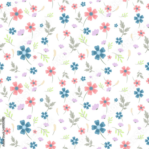 Seamless Pattern Elements Flower. Flat Design Vector Spring Pattern. Modern design with different flowers, leaves and twigs on a light background.