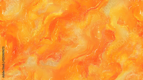 Seamless pattern in bright orange and yellow marble-like colors, accented with bright gold glitter and colorful highlights. For banner background.