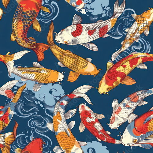 seamless pattern Koi Fish, vector illustration