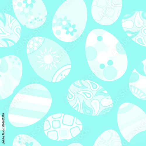 Seamless pattern of Easter eggs on light blue background
