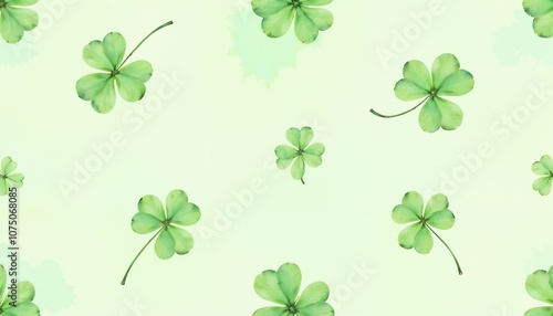 Seamless pattern of green clovers on light background, nature-inspired design, festive decor