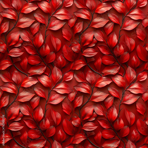 Seamless pattern of leaves and flowers on a dark background, suitable for fabric or wallpaper design.