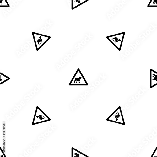Seamless pattern of repeated black pets road signs. Elements are evenly spaced and some are rotated. Vector illustration on white background