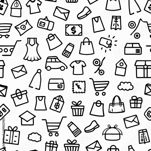 Seamless pattern of simple line icons representing e-commerce and retail