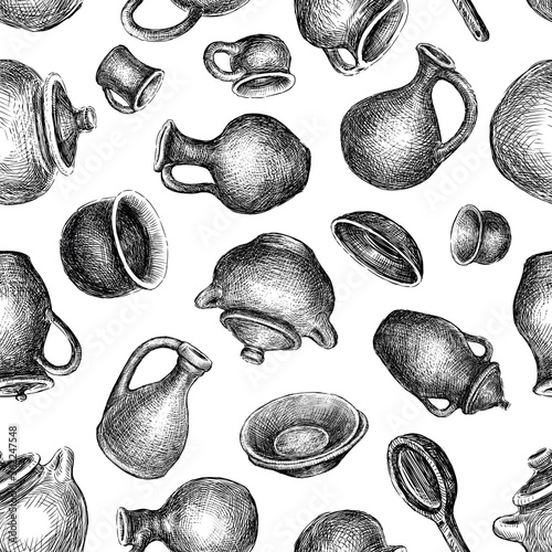 Seamless pattern of sketches of various pottery