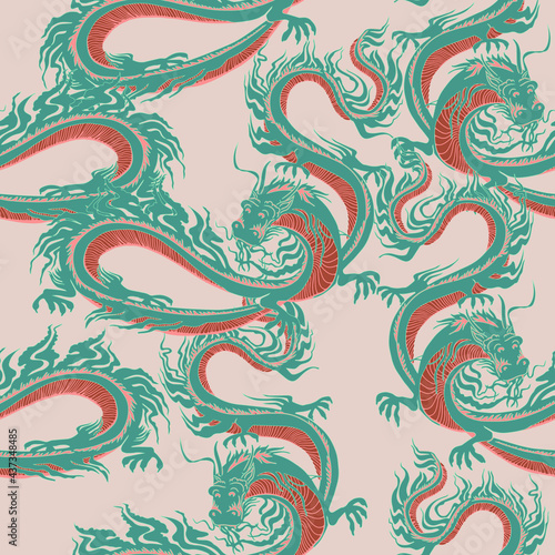 Seamless pattern. Oriental style. Dragons