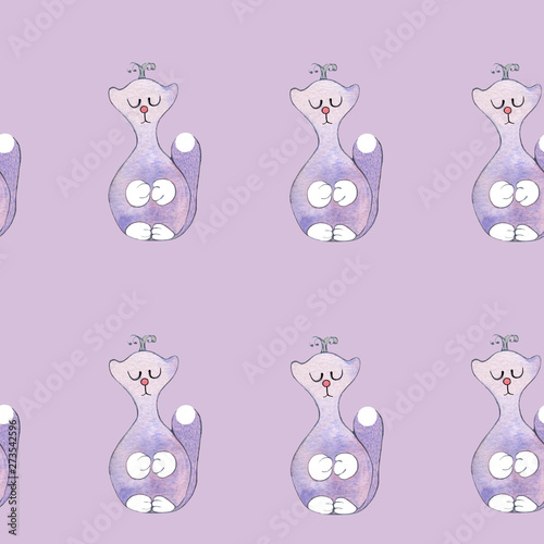 Seamless pattern with a narcissistic, self-satisfied cat princess.