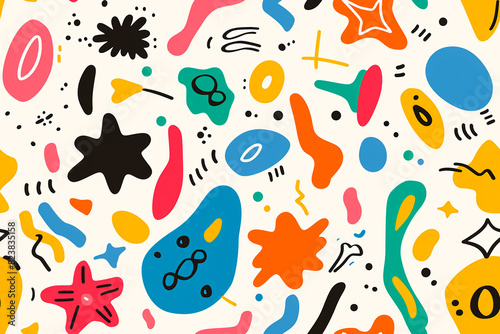 Seamless pattern with colorful abstract shapes, perfect for modern and playful designs. This vibrant pattern adds a touch of creativity and energy.