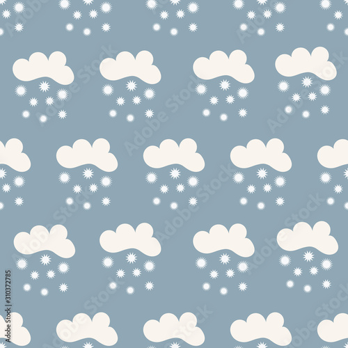 Seamless pattern with cute white clouds. Vector illustration.