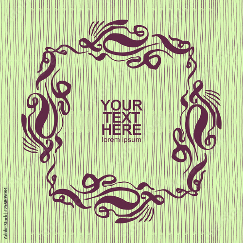 Seamless striped hand-drawn background with ornate frame and place for text. vector template for cover, greeting card, invitation