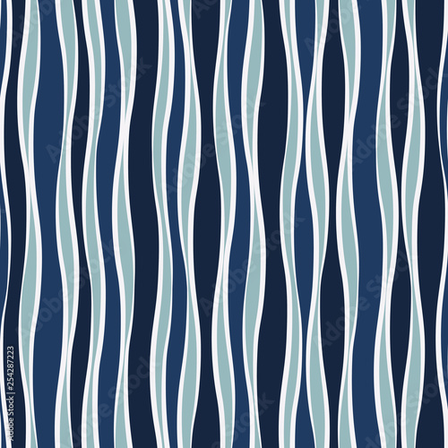 Seamless vector abstract pattern with waves of lines in monochrome blue colors. Endless geometric background