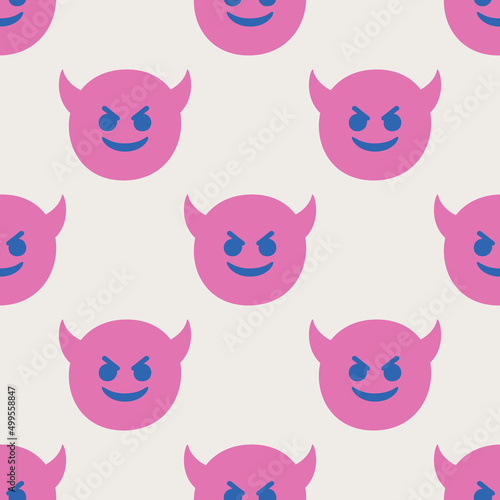 Seamless vector devil facial expression pattern. Repeat chat smiles background for fabric, textile, wrapping, cover etc.