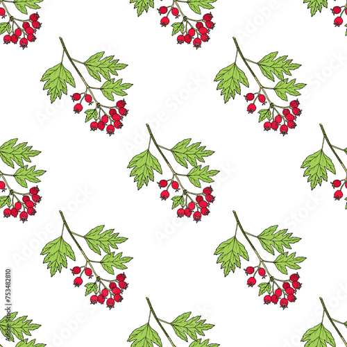 Seamless vector pattern with hand drawn Mountain hawthorn