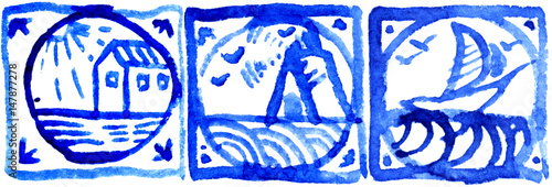 Seamless watercolor pattern with holland tiles