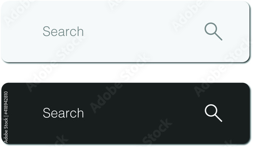 Search bar search box with shadows. Website search button. Simple concept search button for website and projects. Search icon bar. Dark and light interface design. Enter text box. Gray and dark gray.