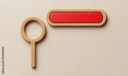 Search Magnifying Glass and Red Button on Soft Beige Background